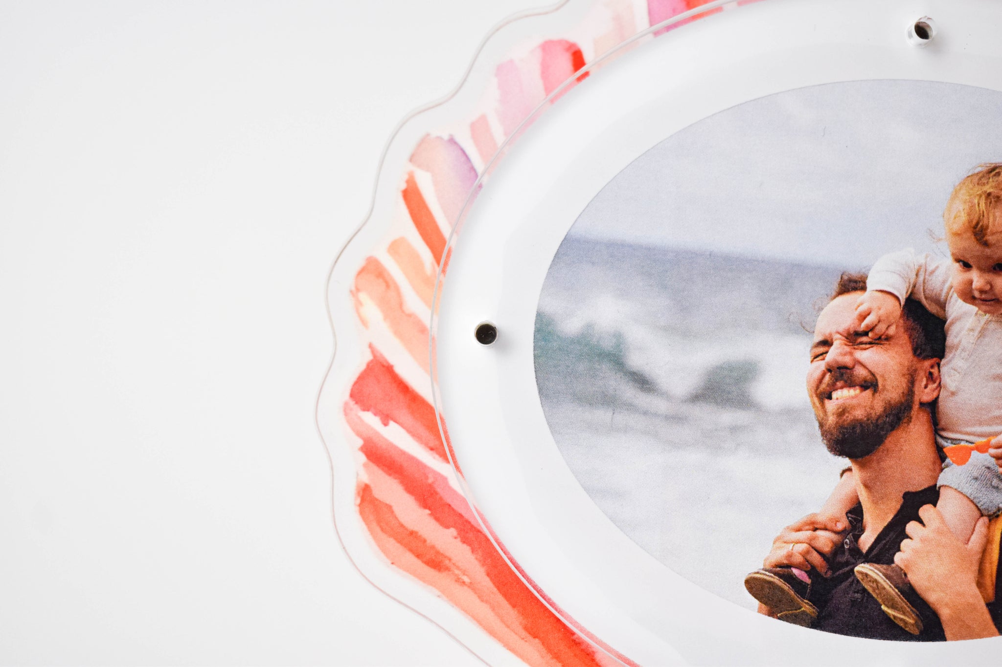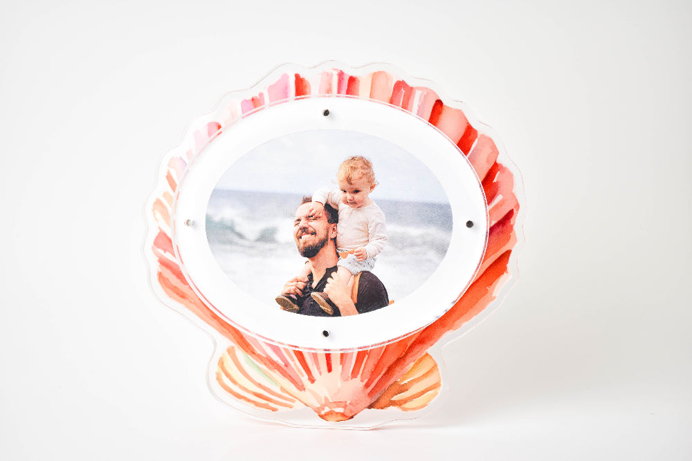 Two-piece acrylic frames held together by magnets for easy photo-swapping. Available freestanding or with a kickstand.